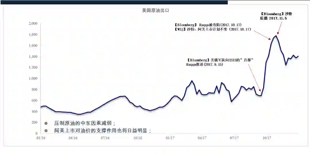 见顶的时间点是什么?那边是沙特的反腐,这边的核心是ISIS首都被打下来。所以油价是供需问题还是地缘政治的问题,在我看来地缘政治这两年在油价里面是有很大的影响。