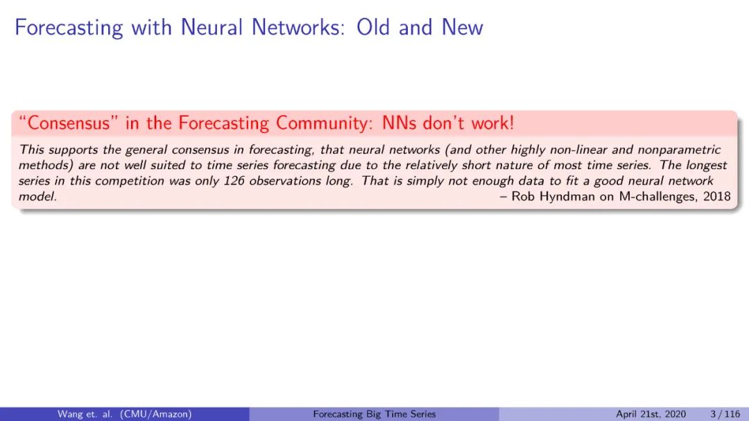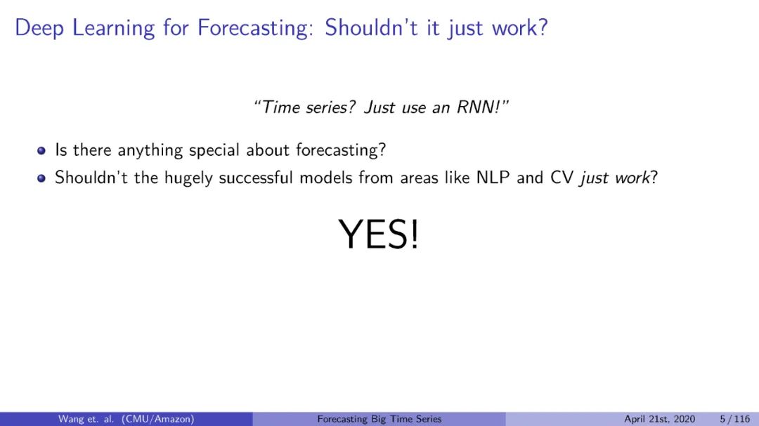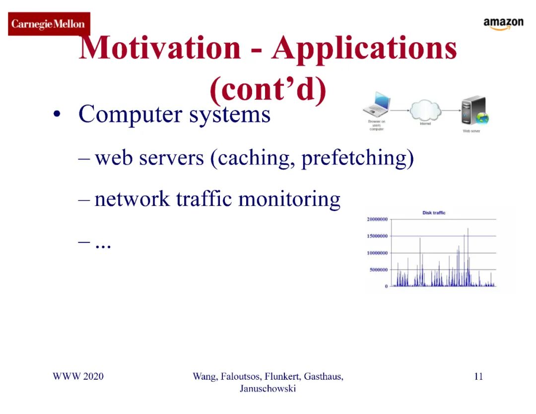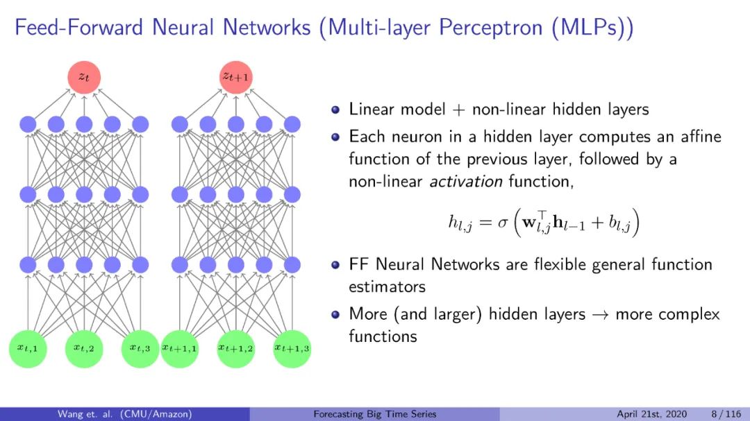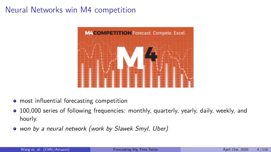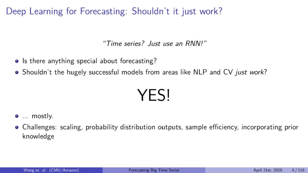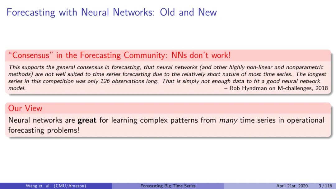 时间序列预测是业务流程自动化和优化的一个关键因素: 在零售领域,决定订购哪些产品以及将它们存储在哪里取决于对不同地区未来需求的预测;在云计算中,对未来服务和基础设施组件使用情况的估计将指导容量规划;仓库和工厂的劳动力调度需要预测未来的工作量。近年来,预测技术和应用的范式发生了变化,从基于计算机辅助模型和假设到数据驱动和全自动。这一转变可以归因于大型、丰富和多样化的时间序列数据源的可用性,并导致了一系列需要解决的挑战,如:我们如何建立统计模型,以有效地和有效地学习如何从大型和多样化的数据源进行预测?在有限的观测情况下,我们如何利用“相似”时间序列的统计能力来改进预测?建立能够处理大量数据的预测系统意味着什么?