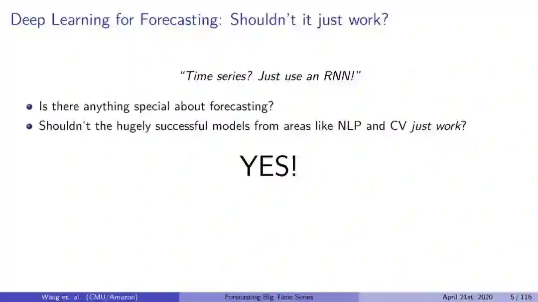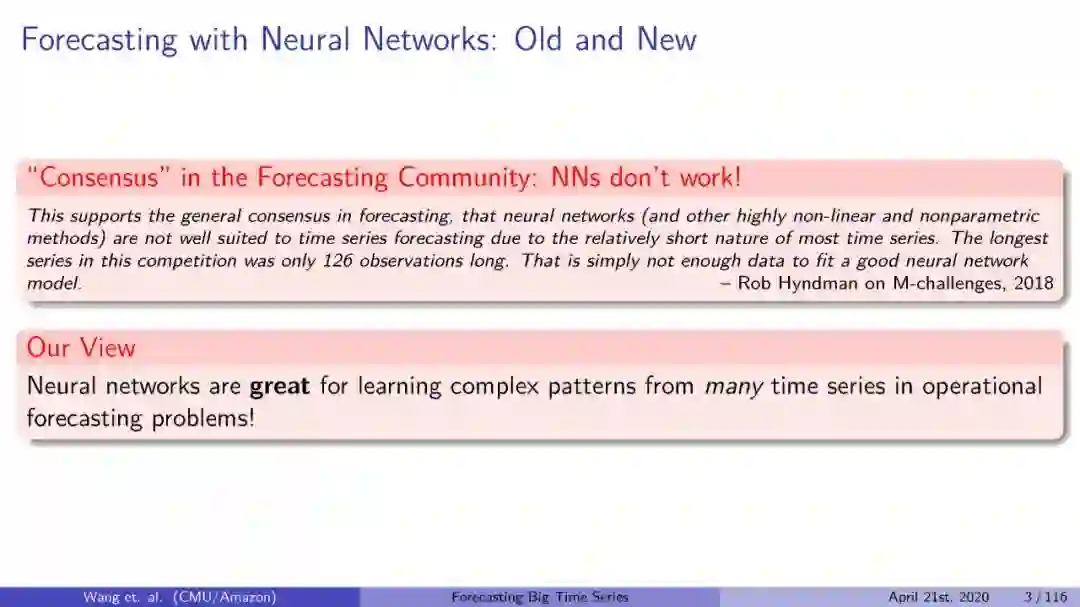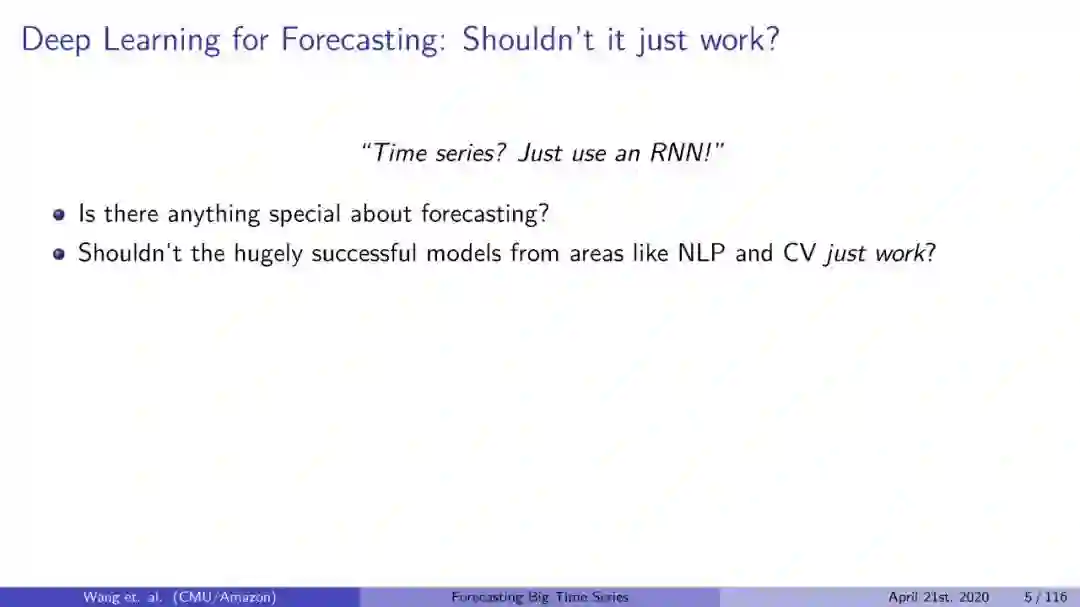 【导读】CCF-A类顶会WWW2020最近在线举行。来自CMU-Amazon五位学者给了《时间序列预测:理论与实践》的Tutorial报告,共379页PPT,阐述了解决大规模预测问题提供最重要的方法和工具的简明和直观的概述