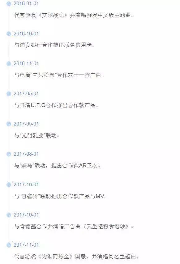 而对于商家客户来说,虚拟偶像永远精力充沛,绝不耍大牌,成本更低,也是不错的选择。例如2016年以来,虚拟偶像洛天依商业代言活动不完全统计如下,可见虚拟偶像有着极高的商业价值。