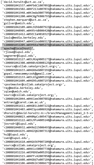 咋一看结果是对的,但细看(高亮处)有些邮箱地址包含了 <> 的符号,或者根本不是正常的邮箱地址,比如 apache@localhost。