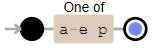 模式 [abc] 的可视图如下,注意 “One of” 是说集合里面的字符是“或”的关系。