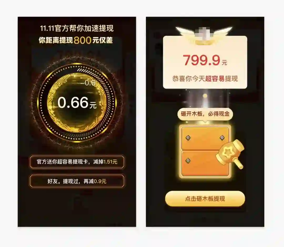 现金提现玩法,而且金额比较大的情况下,人性中的”贪念”更容易被激发出来。