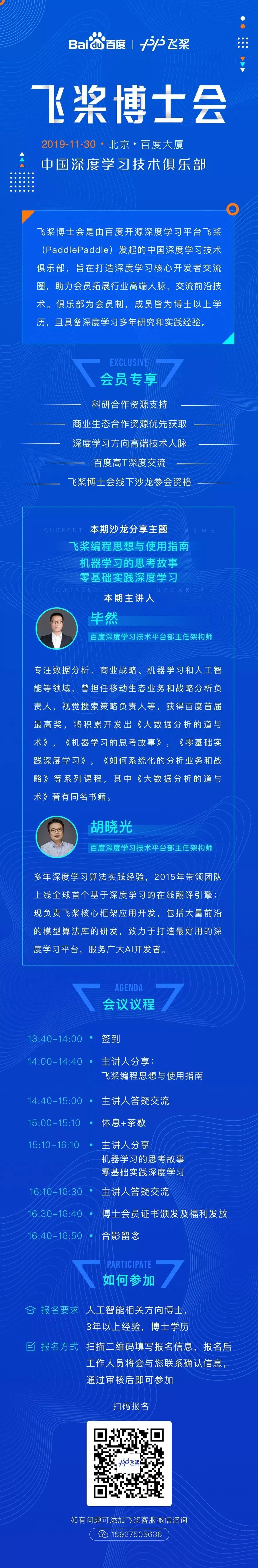 飞桨博士会是由百度开源深度学习平台飞桨(PaddlePaddle)发起的中国深度学习技术俱乐部,旨在打造深度学习核心开发者交流圈,助力会员拓展行业高端人脉、交流前沿技术。俱乐部为会员制,成员皆为博士以上学历,且具备深度学习多年研究和实践经验。博士会的会员将会获得以下优享机会: