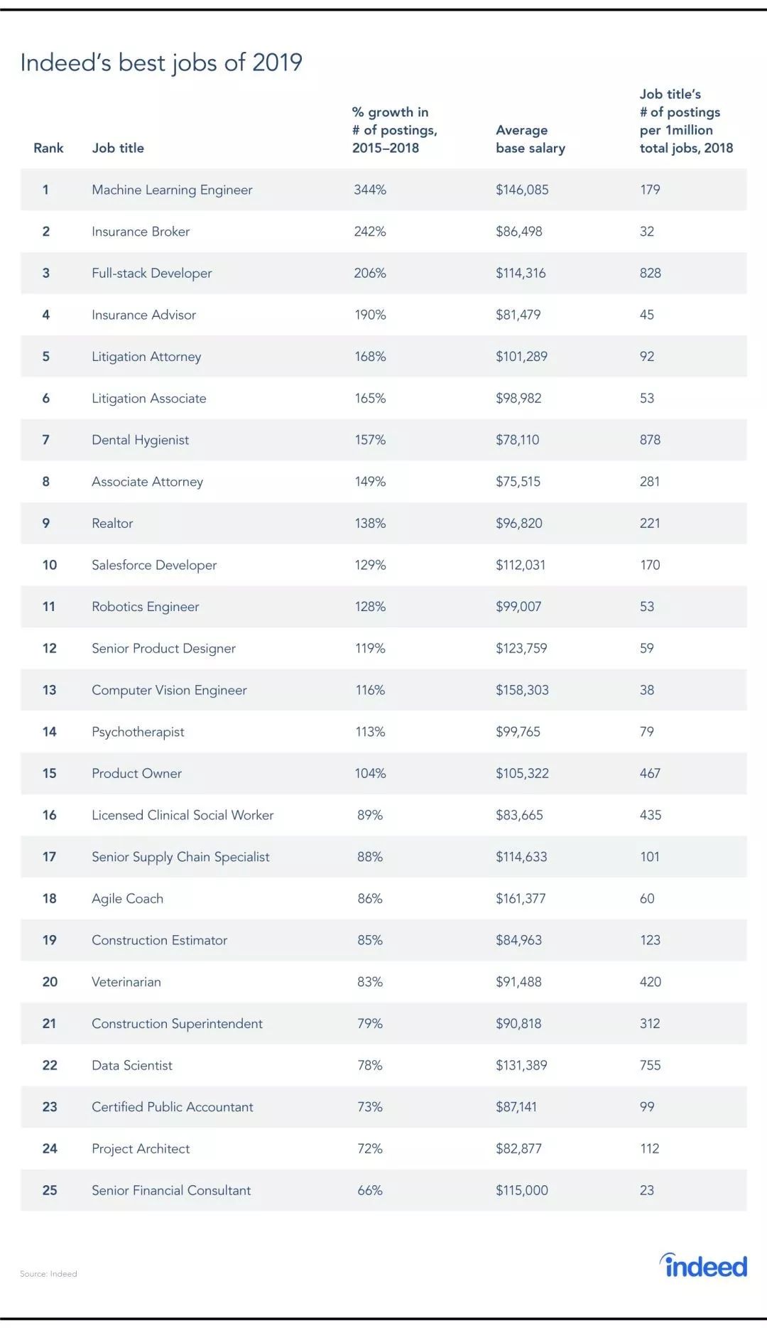 2019年即将过去,回顾这一波澜不惊的一年,薪资收入最高的是哪个职位呢?根据美国知名求职网站Indeed发布的2019年最佳工作清单来看,排在榜首的是机器学习工程师,其职位的平均薪水为14.6万美元(约98万人民币),同比去年增长高达344%。但机器学习工程师的路并不是那么好走,很多高学历、高能力的求职者却未必能真的获得对应的高薪资,这是为什么呢?