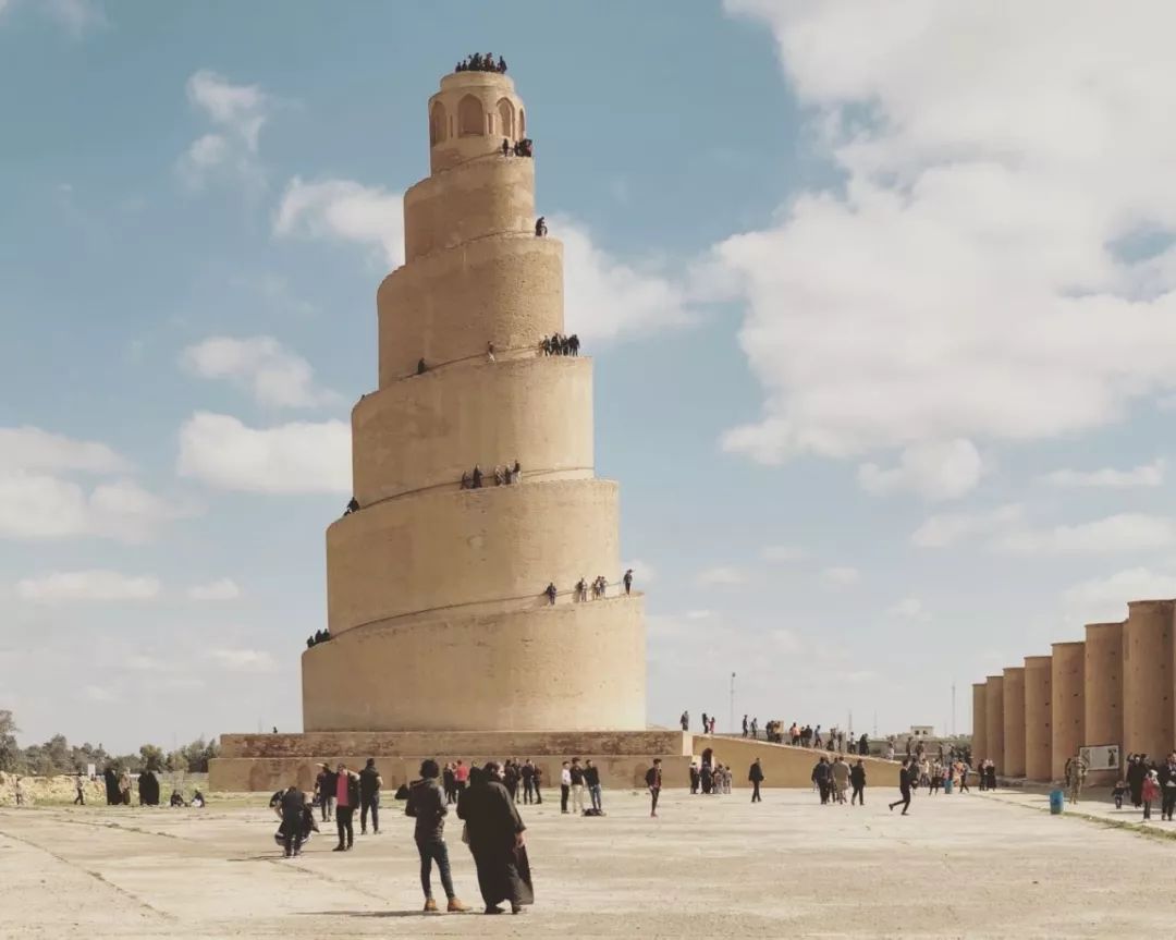 2019 年 3 月,伊拉克萨迈拉。萨迈拉通天塔像极了传说中的巴别塔,盘旋而上的阶梯高耸在美索不达米亚平原之上,造型既远古又科幻,是我在伊拉克最喜欢的建筑物。