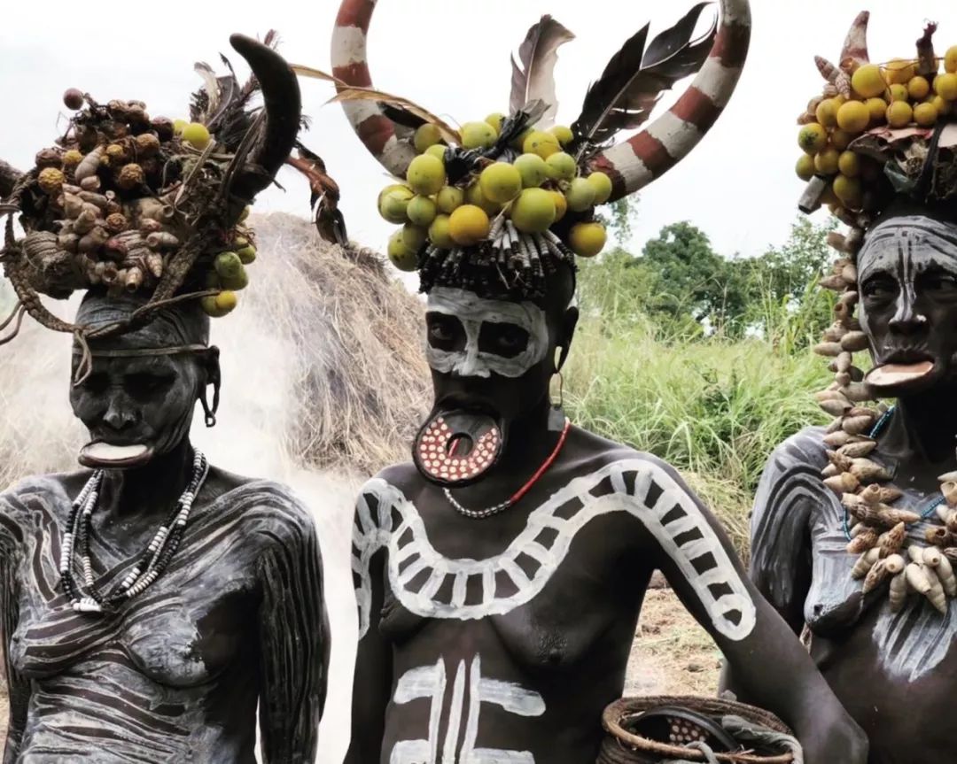 2018 年 7 月,埃塞俄比亚南部。非洲原始部落散落在非洲各个地方,盘唇族便是其中的一个。几个当地部落妇女打扮了起来,用她们最原始的方式。