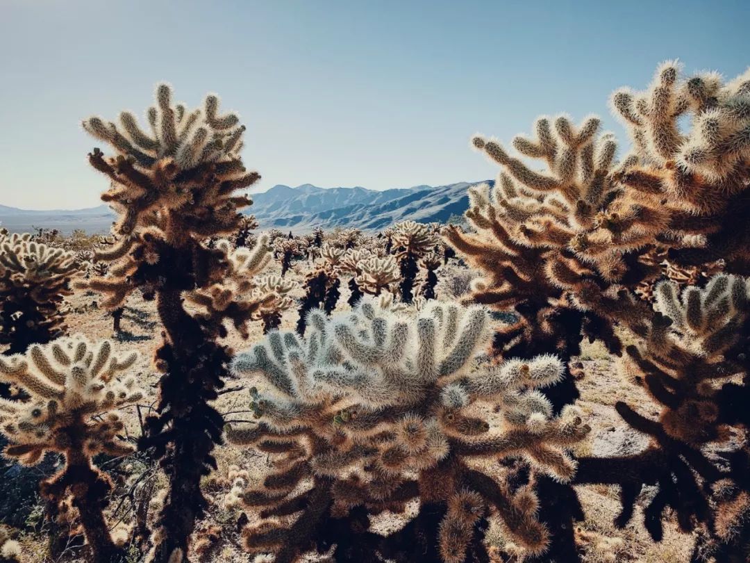 这张照片我是在旅行的途中,在美国的约书亚树国家公园,有一个名叫 Cholla Cactus Garden 的山谷,这里生长着大片的 Teddy-bear cholla!它们无惧酷热与干燥,在烈日下肆意的生长。我顶着烈日拍下了这张作品!