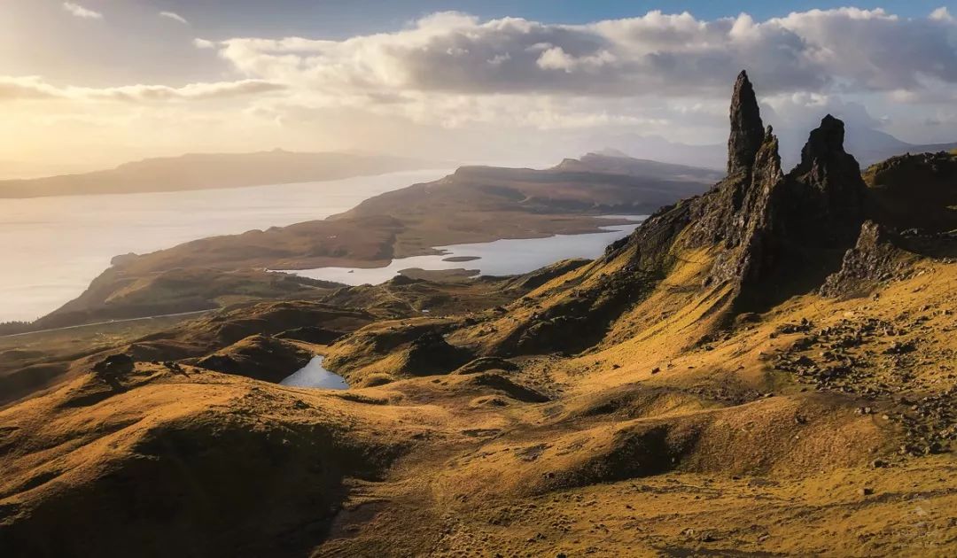 摄于苏格兰天空岛,日出之际,晨光照耀在老人峰上,特别宏伟壮观。