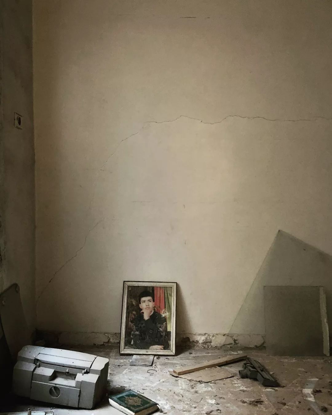 到了阿勒颇我被深深震撼住了,在废墟之间游走了四天,拍摄了很多照片。进入一个空房间时看到了一张摆在地上的男孩的写真照片,我就特别有冲动将它拍摄下来。