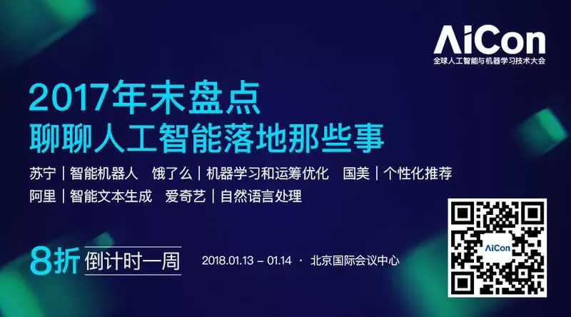 AICon 上,我们邀请到了来自 AWS、BAT、360、京东、微信、携程、爱奇艺、知乎、第四范式等公司 AI 技术负责人前来分享他们的人工智能落地实践,内容涵盖 AI 架构、机器学习 2.0、搜索推荐及 feed 流、语音识别与智能助手、计算机视觉、NLP 等相关话题。目前大会 8 折报名倒计时进行中,可点击文末“阅读原文”详细了解。