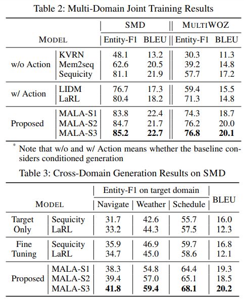 MALA: Cross-Domain Dialogue Generation with Action Learning