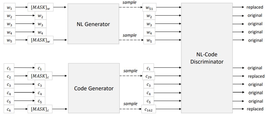 。CodeBERT 学习支持自然语言代码搜索以及代码文档生成等下游 NL-PL 应用的通用表征。他们使用基于 Transformer 的神经架构来开发 CodeBERT,并利用结合了 replaced token 检测预训练任务的混合目标函数进行训练,从而用于检测从生成器采样的可能替代方案。