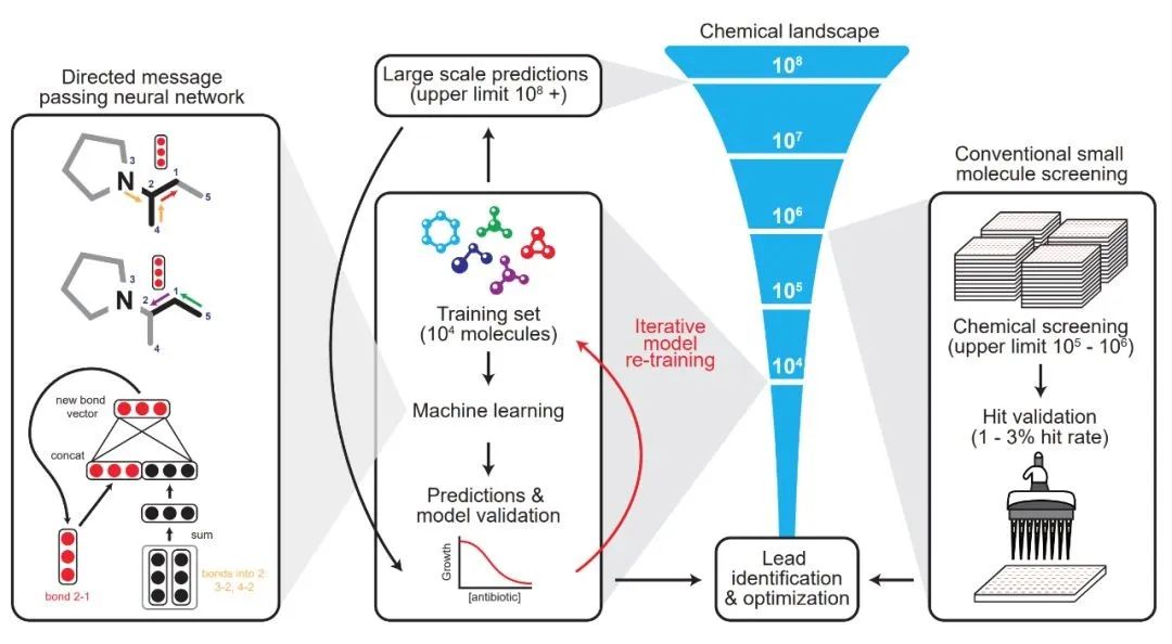 从超过 1.07 亿种分子中识别出了强大的新型抗生素分子——halicin
