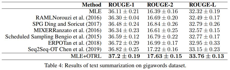 就 Rouge-1、Rouge-2 和 Rouge-L 三项评估指标而言,本文提出的模型在 gigaword 测试数据集上均获得最高分(文本摘要任务)。