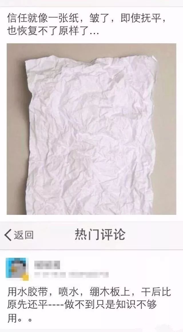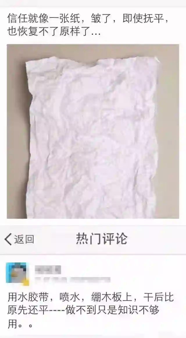 信任就像一张纸,如果皱了没点智商和本事你是弄不平的