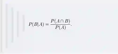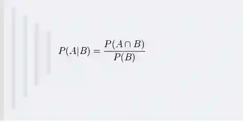 比如,在同一个样本空间Ω中的事件或者子集A与B,如果随机从Ω中选出的一个元素属于B,那么这个随机选择的元素还属于A的概率就定义为在B的前提下A的条件概率,所以:P(A|B) = |A∩B|/|B|,接着分子、分母都除以|Ω|得到