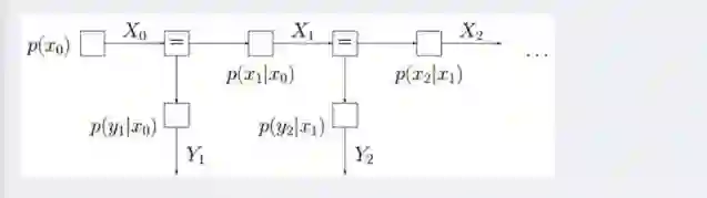 再比如,对于下图所示的由马尔科夫链转换而成的因子图: