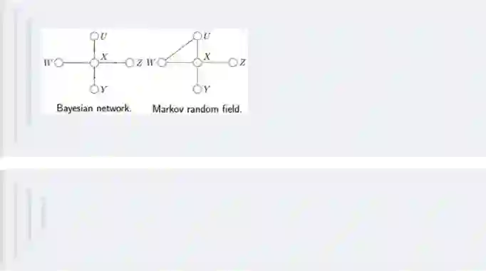 但在有些情况下,强制对某些结点之间的边增加方向是不合适的。使用没有方向的无向边,形成了无向图模型(Undirected Graphical Model,UGM), 又被称为马尔科夫随机场或者马尔科夫网络(Markov Random Field, MRF or Markov network)。