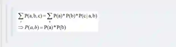 所以有:P(a,b,c) = P(a)*P(b)*P(c|a,b)成立,化简后可得: