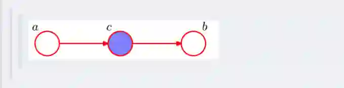 1、c未知时,有:P(a,b,c)=P(a)*P(c|a)*P(b|c),但无法推出P(a,b) = P(a)P(b),即c未知时,a、b不独立。