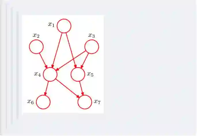 令G = (I,E)表示一个有向无环图(DAG),其中I代表图形中所有的节点的集合,而E代表有向连接线段的集合,且令X = (Xi)i ∈ I为其有向无环图中的某一节点i所代表的随机变量,若节点X的联合概率可以表示成: