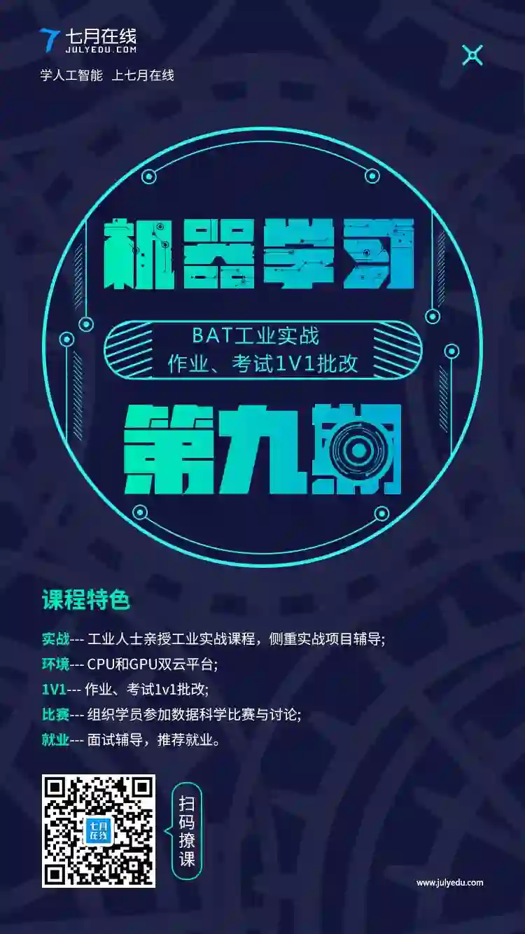 福利时刻:为了帮助大家更好的学习机器学习课程的相关知识,我们特意推出了机器学习第九期系列课程.
