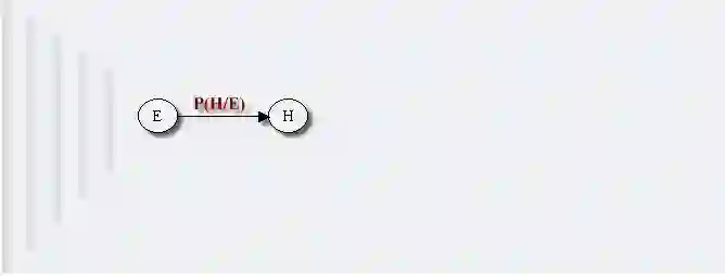 例如,假设节点E直接影响到节点H,即E→H,则用从E指向H的箭头建立结点E到结点H的有向弧(E,H),权值(即连接强度)用条件概率P(H|E)来表示,如下图所示: