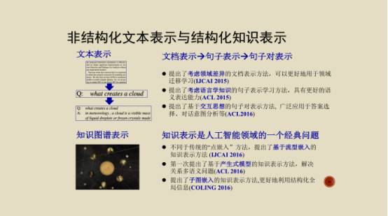 人机对话研究怎么让计算机跟人一样自如交谈。在场的老师和同学大多都用过“小冰”,由于背后充足的技术、团队和资金支撑,它在对话方面做得就很不错,但是事实上它还存在诸多的问题,比如一致性、身份个性等。由此你可以看到这样一个非常具有挑战性的问题,有些人说倘若把人工智能比喻为“皇冠”,皇冠的明珠就是自然语言处理,而明珠中最亮的那颗,就是人机对话。
