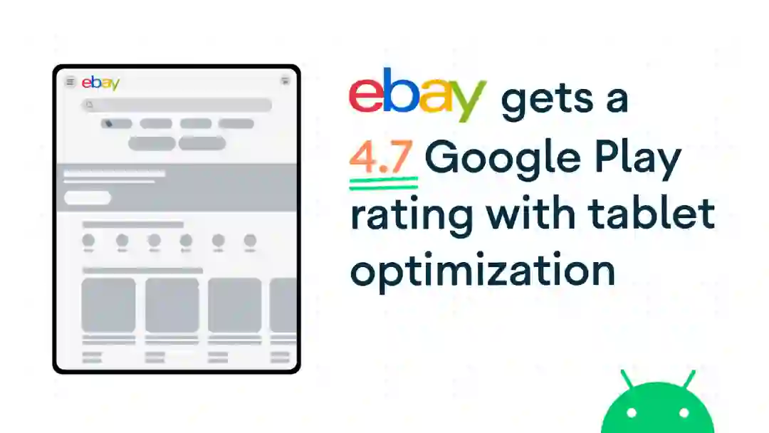 (如平板电脑和可折叠设备) 上的 eBay 应用可以进一步改进使用体验时,他们立即着手优化跨设备的用户体验。功夫不负有心人,eBay 应用很快便在 Google Play 上获得了 4.7 星的高分 (满分 5 星)。