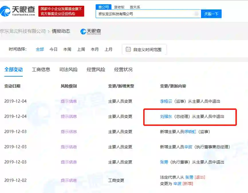 京东旗下2家公司发生工商变更,刘强东卸任经理