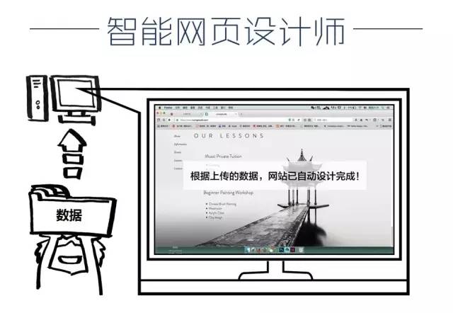 用户只需要上传所需要的资料,例如:视频,图像,文本,网址等,不需要专人设计,计算机会根据偏好风格自动生成网站。以后网站不再高冷,如同微信等软件一样,用户触手可及,随心所欲。