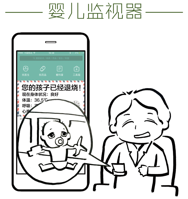 通过智能摄像头对婴幼儿状况进行监控,家长能够随时随地通过移动设备对婴儿的温度,心率和呼吸进行观察,不同于穿戴式或夹式的监视产品,智能婴儿监视器更加敏感和智能,并且能够及时提出预警。