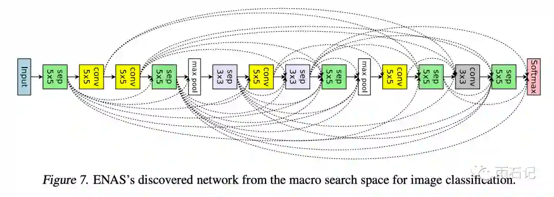 有了控制器以后,就可以用控制器采样一个模型作为结果了。当然,也可以像NAS里面那样,采样若干个模型,用最好的那个。