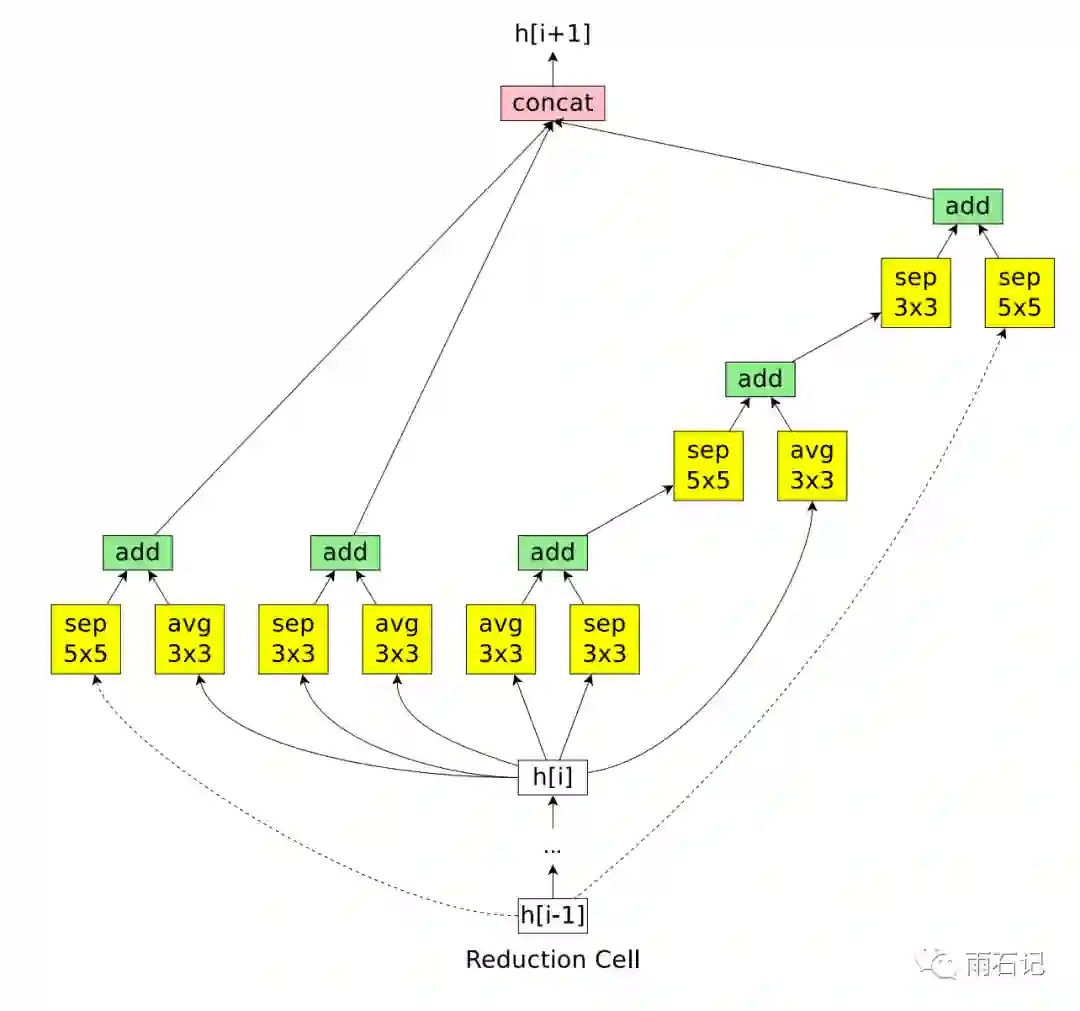 同样的,很多论文中选择不去采样整个卷积网络,而是去学习Normal Block和Reduction Block,