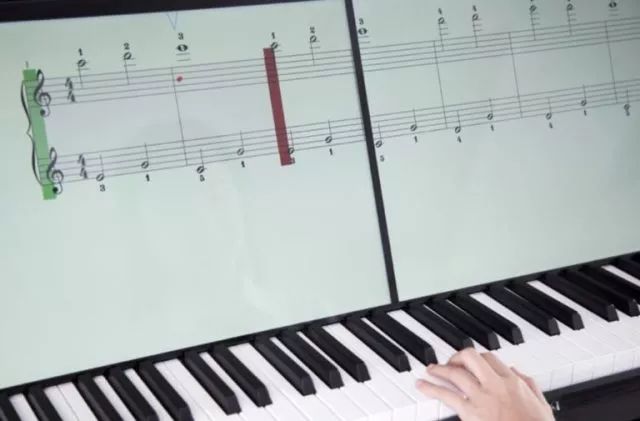 学习者在演奏时,系统能够对其弹奏行为进行判断,给出相应的成绩和分析结果。一旦出现误弹或节奏问题时,钢琴屏幕上曲谱就会把对应音节标记为红色,并暂停进度,直到红色标记笔变为绿色。其精准程度甚至超过了钢琴大师。