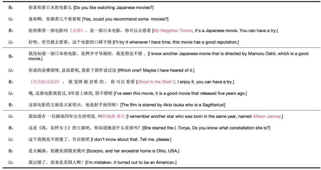让机器生成有内容并且主题连贯的多轮开放域对话,是人工智能公认的关键任务之一。针对这一任务,研究人员尝试了一些基于端到端的生成模型,但模型生成的回复内容丰富性较低。有效聊天话题管理技术的实现目前主要面临两个挑战,1. 高层级对话目标(Gonversational Goal,聊天话题)序列的规划,其困难在于对话系统既要保持对话主题的连贯性,也要兼顾用户的兴趣,以免机器单方面的自说自话;2. 如何基于一个对话目标生成内容丰富的深入对话,此技术可以支持许多实际的对话应用场景,例如多个知识点的持续推荐、某个物品的推荐等。