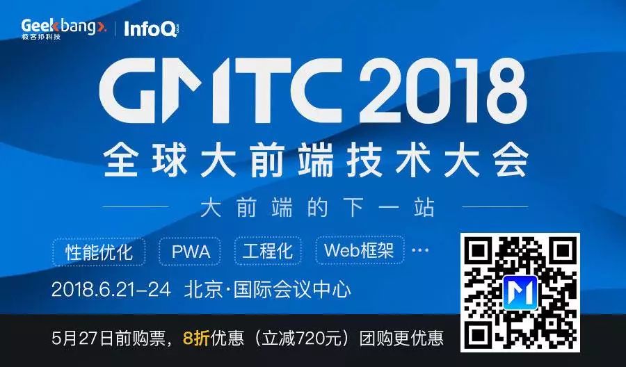 2018 年 6 月 GMTC 全球大前端技术大会上,我们请到了阿里巴巴 UC 内核无线开发专家刘翔老师,请他来谈谈:从 UC 内核角度出发,PWA 技术在阿里体系的实践及影响。我们提前对他进行了专访,下面是 InfoQ 对他采访的简单整理。想了解更多国内 PWA 技术落地实践的优秀案例,可以扫描下方二维码关注 GMTC 全球大前端技术大会(备注:大会 8 折优惠火热售票中,扫码购票)。