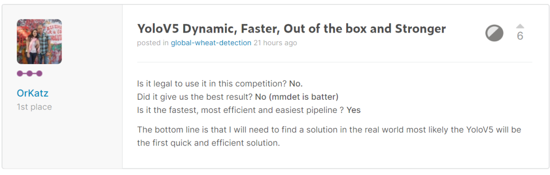 比赛结束后,讨论区本该是晒成绩或者解决方案的,但却出现了大量关于"YOLOv5"的讨论。