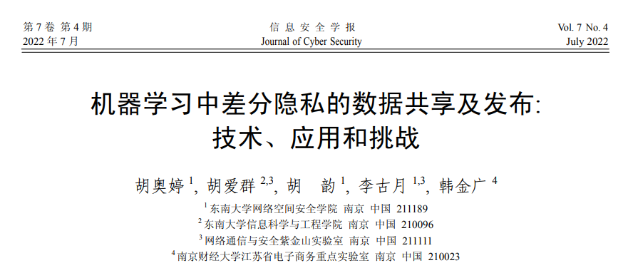 近年来有以下与差分隐私相关的综述性分析。在这些综述分析中, Dwork 等人[2]首先给出隐私保护 分析中存在的问题以及初步的差分隐私解决方案。Dwork和Roth[15]总结了到2014年为止差分隐私出现 的理论性技术。Sarwate 和 Chaudhuri[7], Ji 等人[16], Goryczka 等人[17]和 Jain 等人[18]分别强调信号处理、 机器学习、多方安全计算、大数据中存在的差分隐 私问题。Zhu 等人[19]介绍了差分隐私的数据共享和分 析, 与本文目标类似。然而近年来, 随着差分隐私技 术及机器学习技术的迅速发展, 许多新的理论突破 和实践层出不穷。因此本文将涵盖更多新发展的技 术和问题。