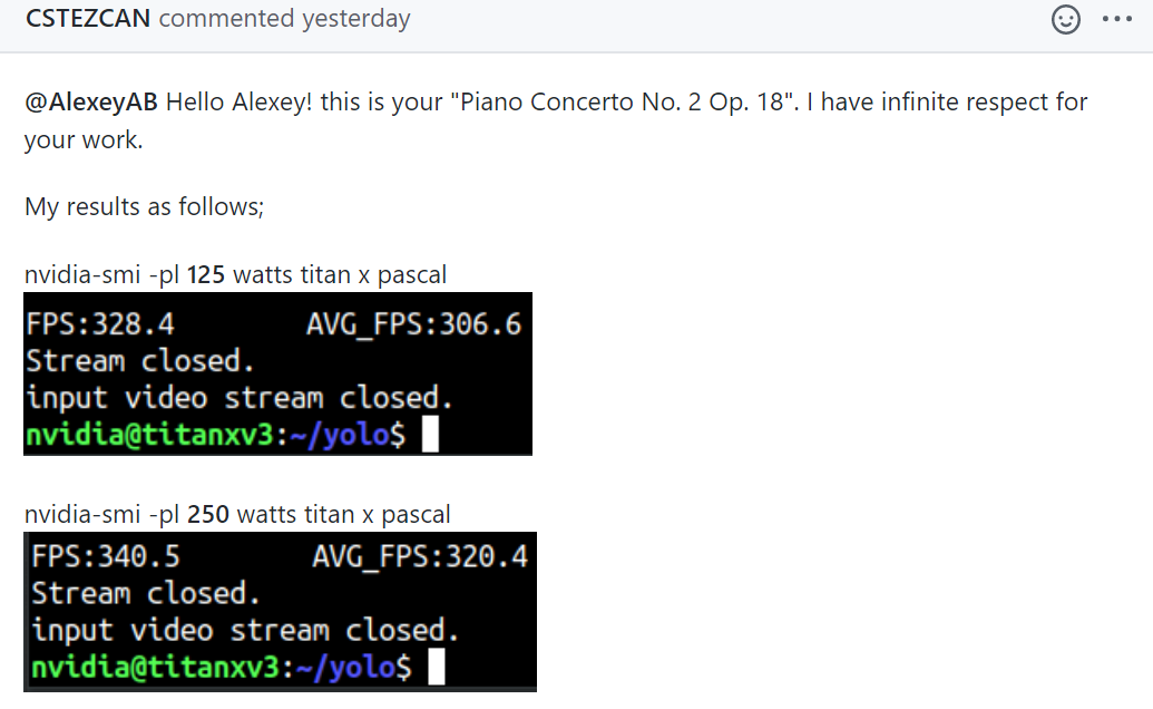 @CSTEZCAN Thanks! I think yolov4-tiny can work with 500 - 1000 FPS by using OpenCV or tkDNN/TensorRT when it will be implemented in these libraries.