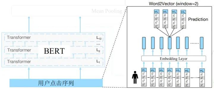 我们知道bert在NLP取得巨大成功的原因主要是预训练,所以在比赛初期不断尝试将预训练运用到本赛题中。但与NLP不同,广告具有稀疏性,使其词表达到七八百万,这里会造成两个问题。第一个问题是这么大的词表很难放入GPU中,第二个问题是即使放到CPU,由于参数过大,也难于训练。针对这些问题,我们使用了两阶段的预训练方法对BERT进行训练。