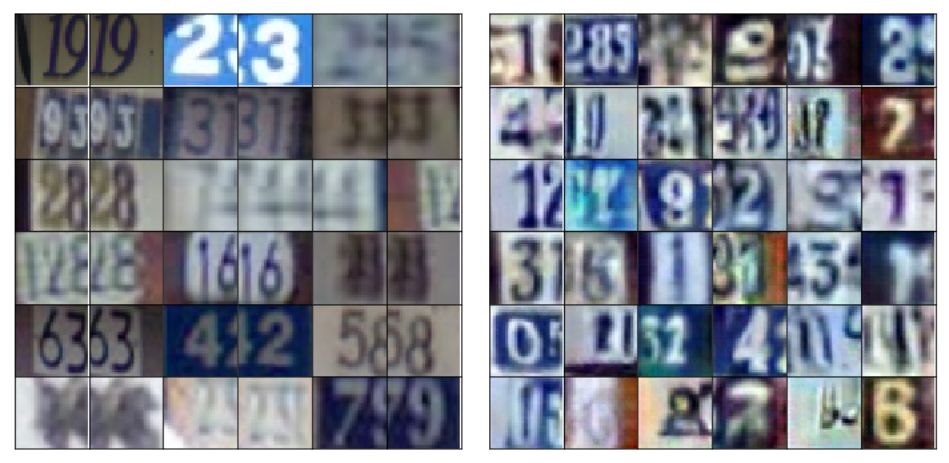比较真实(左)和生成的(右)SVHN样本图像。虽然有些图像看起来很模糊,且有些图像很难识别,但值得注意的是,数据分布是由模型捕获的