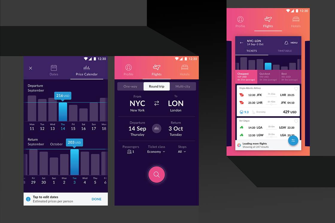 我们一直在探索 momondo 的应用设计方向——利用 Material Design 元素得天独厚的优势,同时保留 momondo 自身的风采。应用中的每一个功能、每一处界面设计,都经过了我们的反复推敲、论证和改进。