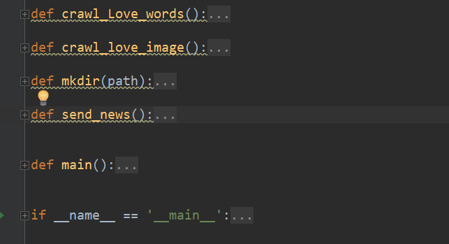 main() 函数就是我们主逻辑函数,程序运行的逻辑顺序就是在这个函数里规定的。在 main() 里我首先判断下当前路径下是否有「love_word.txt」文件,如果有则提示相应的信息,没有的话才去执 crawl_Love_words() 函数,去网上抓取一些情话数据。
