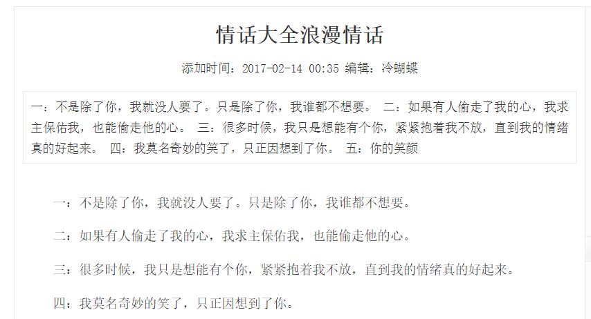 如果对你的文笔有信心,那你可以自己写些情话。当然大部分人的文笔跟我一样是比较差的,所以这时候我们就可以利用网上的资源,比如下面的情话网站。