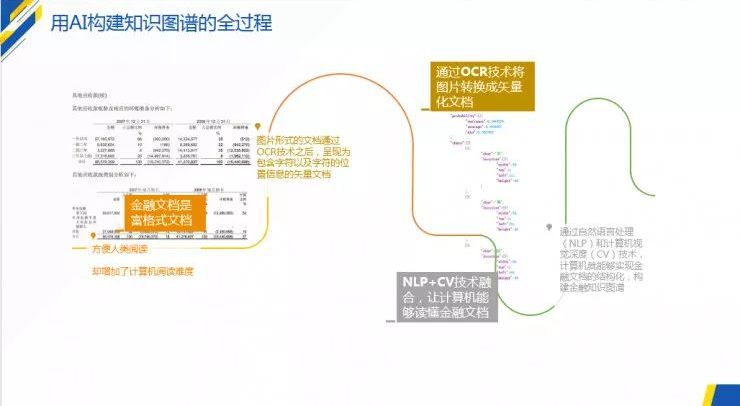 首先,金融行业拥有海量的包含各行各业的数据信息,而且这些信息又以各种形式(如文字、表格、图形等)存储在大量的文档上,这些都是非标准化、碎片化的信息,需要被整理成标准化的、相关联的金融知识图谱,才便于金融从业者使用。