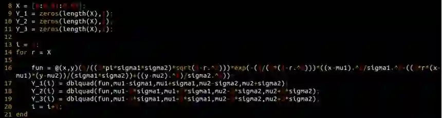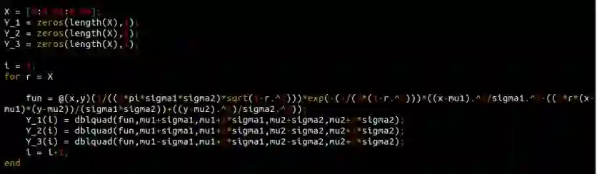 由于该积分无法直接求出解析解,我们使用matlab求定积分数值解: