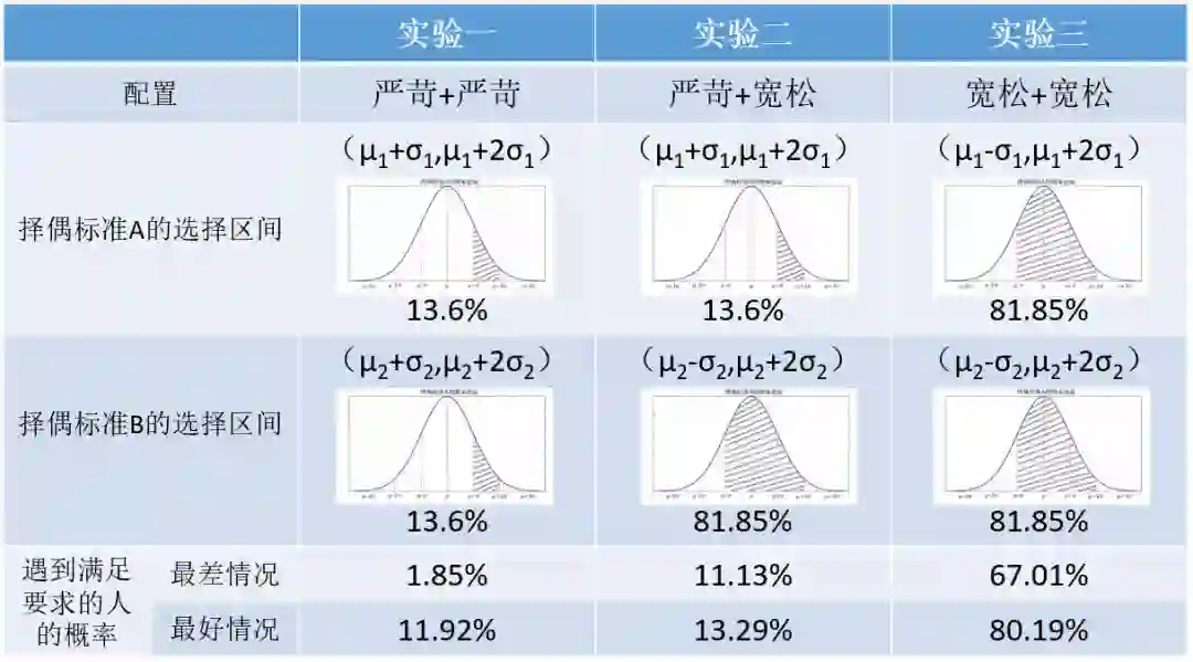 (1)以严苛的条件同时限制择偶标准A和B,即A和B都得落在各自的(μ+σ,μ+2σ)区间内。