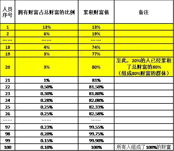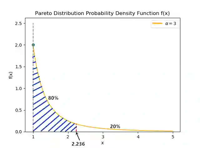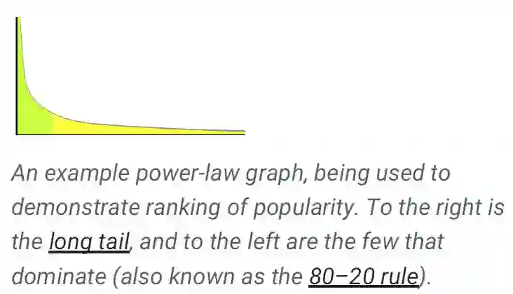除了高斯分布,还有一个常见的分布是幂律分布。实际上,在社会生活中,许多现象并不符合高斯分布,而是更贴近幂律分布,比如人类财富的分布、国家GDP分布、词频分布、社交网络分布等等。著名的80/20定律(20%的人拥有80%的社会资源)即是出自幂律分布。